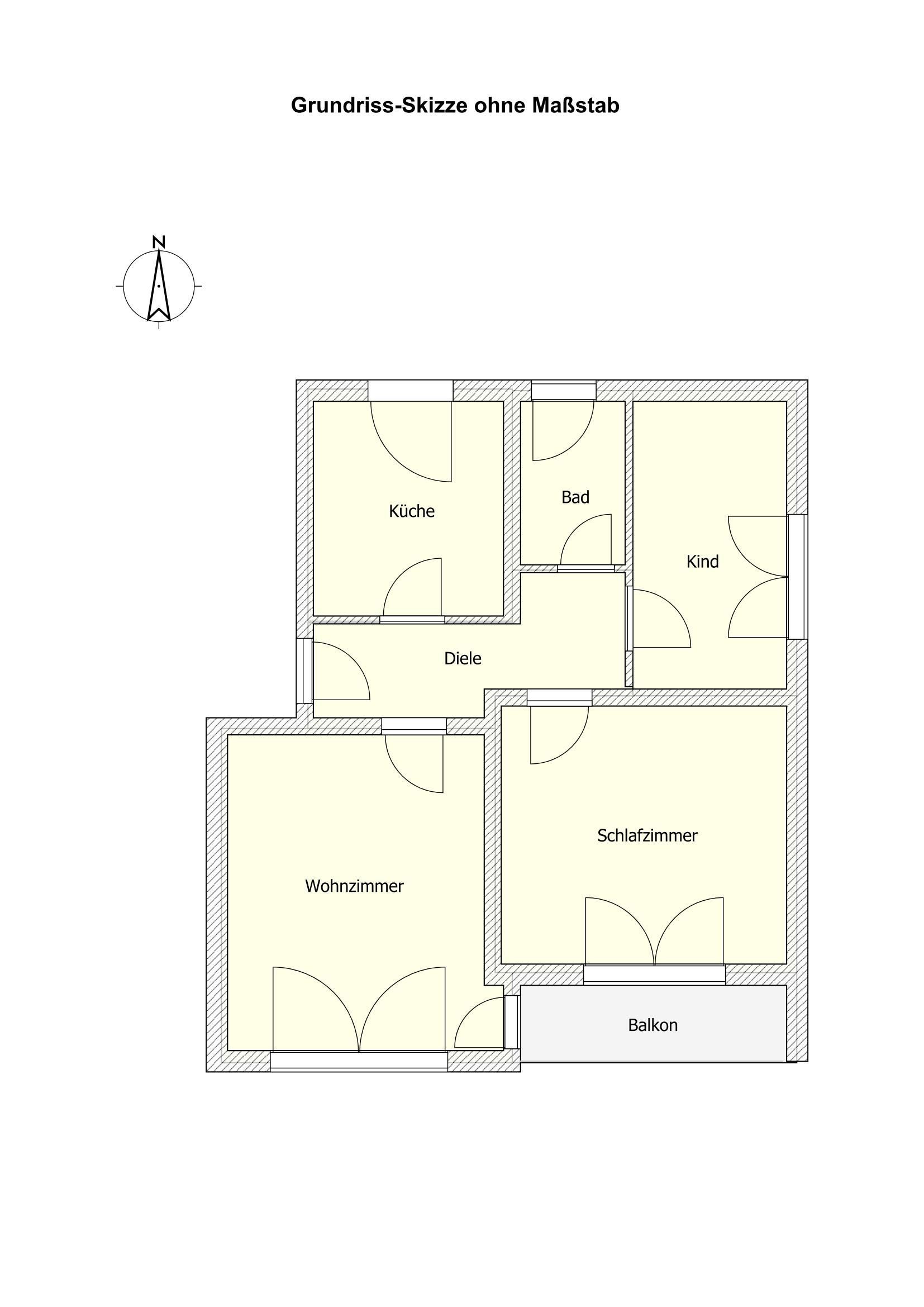 - Wohnzimmer mit Balkon, Schlafzimmer, Kinderzimmer, Küche; Diele; Wannenbad mit Fenster, Kellerraum